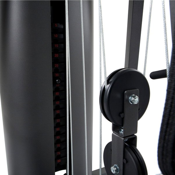 Stos o wadze 80kg gwarantuje wyczerpujący trening wymagającym osobom. Obciążenie możesz dowolnie modyfikować, by dostosować je do swoich umiejętności, a z biegiem czasu zwiększyć je i ćwiczyć na maksymalnych obrotach.