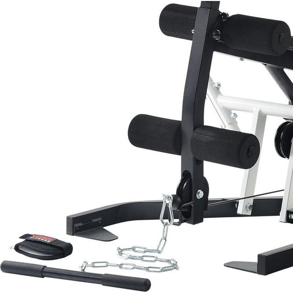 - ćwiczenia: wyciąg górny, wyciąg dolny, oddzielny uchwyt do wyciskania i rozpiętek, dźwignia zginania i wyprostu kolan, w zestawie zdejmowalny modlitewnik,