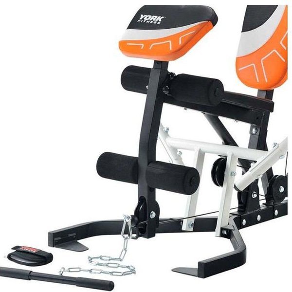 Nigdy nie ignoruj treningu nóg! Twoje ciało powinno się rozbudowywać harmonijnie i firma York o tym wie, dlatego model Perform Gym wyposażono w prasę do nóg. Zginaj i prostuj kolana, utrzymując dowolny ciężar. Stos dostępny w zestawie składa się z 5-kilogramowych płytek, więc precyzyjnie dopasujesz obciążenie do swoich oczekiwań, nie ryzykując przy tym przeciążenia i niebezpiecznej kontuzji. Całkowita masa stosu to 100kg, co wystarcza, by trening w warunkach domowych był dla Ciebie zawsze satysfakcjonujący, niemal jak na profesjonalnej siłowni.