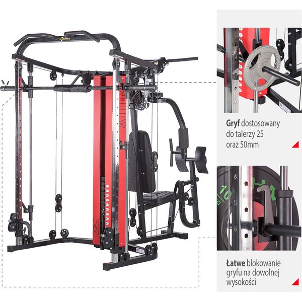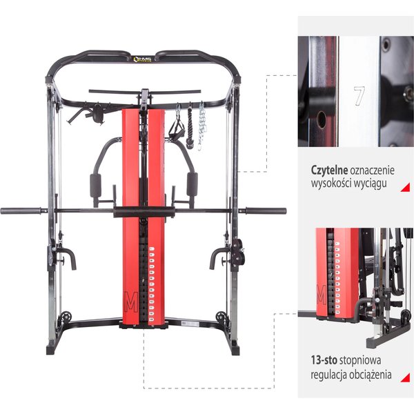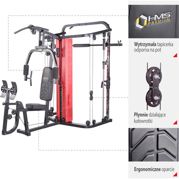 Urządzenie zostało stworzone przez markę HMS i łączy w sobie funkcje atlasu z suwnicą smitha. Dzięki temu, użytkownik ma do dyspozycji wiele różnorodnych ćwiczeń, które pozwolą mu wzmocnić i ukształtować każdą partię mięśniową.