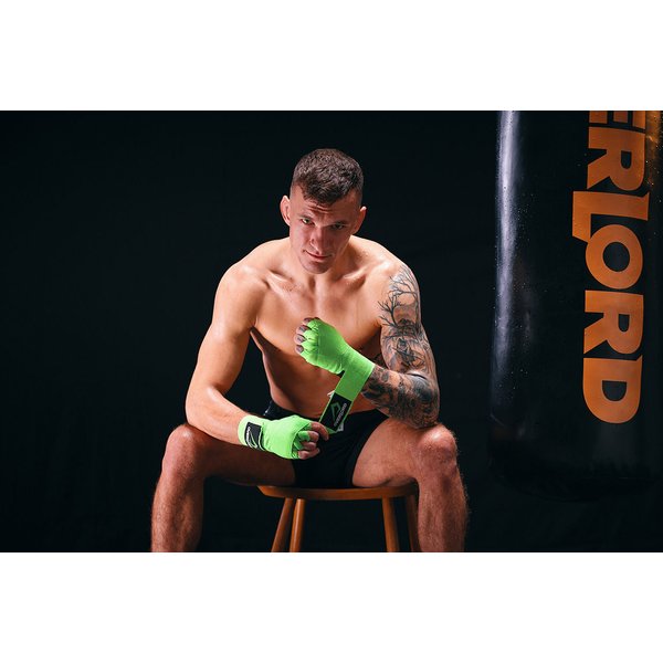 Wykonany jest z wysokiej jakości bawełny z domieszką elastanu, który sprawia, że owijki zawsze wracają do swojego kształtu i nie ulegają deformacji. Bandaże Overlord dzięki chłonnym właściwościom tkaniny zabezpieczają rękawice bokserskie przed wchłanianiem nieprzyjemnego zapachu. Dodatkowo miękka tkanina chroni dłoń przed otarciami. Nie ograniczają swobody ruchów.