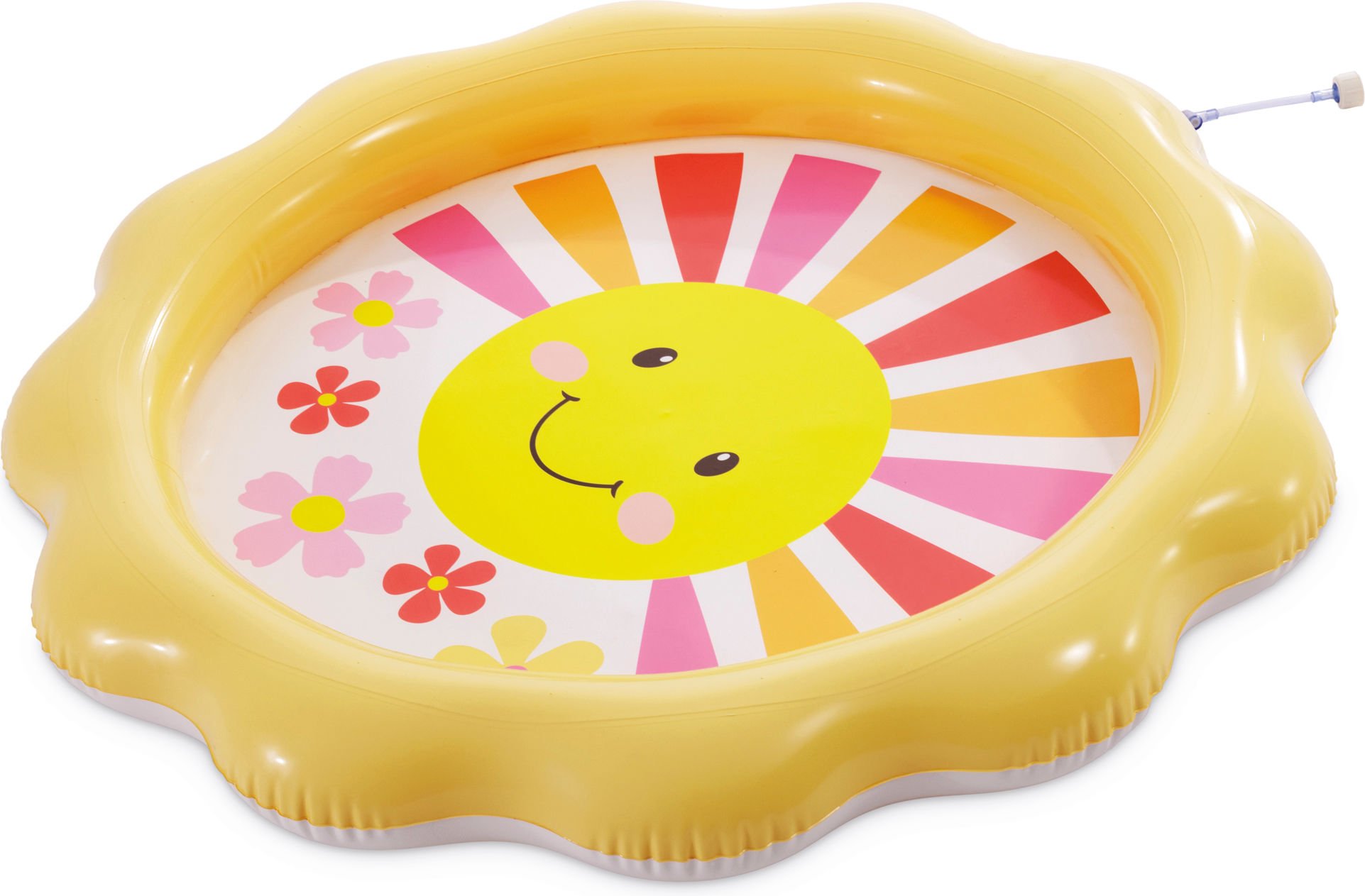 Basen dziecięcy oferuje nie tylko przyjemność z wody, ale także zabawę na świeżym powietrzu. Okrągły kształt z falistymi brzegami zapewnia atrakcyjny wygląd, a grafika z uśmiechniętym słońcem i kwiatami wprowadza radosny nastrój. Dzięki wbudowanemu zraszaczowi, który łatwo podłączysz do węża ogrodowego, maluchy mogą cieszyć się orzeźwiającym deszczem w upalne dni. Bezpieczna, 11-centymetrowa głębokość i pojemność 59 litrów sprawiają, że jest idealny dla dzieci od 2 lat. Wykonany z trwałego tworzywa sztucznego, basen gwarantuje trwałość i łatwość w konserwacji, zapewniając rodzicom spokój ducha podczas zabawy ich pociech.