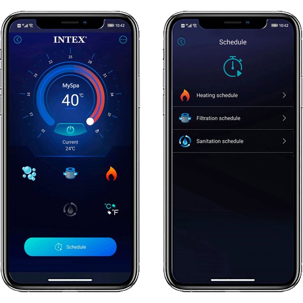 Integralną częścią zestawu jest panel sterowania oraz zewnętrzna jednostka sterująca, które umożliwiają łatwą regulację temperatury oraz pracy dysz wodnych. Dzięki temu użytkownicy mogą dostosować ustawienia basenu do swoich indywidualnych preferencji, co czyni korzystanie z niego jeszcze bardziej satysfakcjonującym. Dla większej wygody, basen oferuje również możliwość sterowania poprzez WiFi, co umożliwia zarządzanie funkcjami basenu z poziomu smartfona.