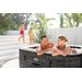 Nieocenionym udogodnieniem jest także możliwość korzystania z efektu jacuzzi, który basen oferuje dzięki innowacyjnym dyszom powietrznym. W przeciwieństwie do tradycyjnych rozwiązań, dysze te wyposażone są w podgrzewacze, co sprawia, że ciepłe pęcherzyki powietrza delikatnie masują ciało, przynosząc ulgę zmęczonym mięśniom i pozwalając na głęboki relaks. Dzięki temu, każda chwila spędzona w basenie staje się wyjątkowym doświadczeniem. Komfort użytkowania basenu Greystone Deluxe zwiększają również szerokie burty, które umożliwiają wygodne opieranie się podczas korzystania z jacuzzi. To idealne miejsce na relaks z ulubioną książką lub napojem w ręku, co dodatkowo podnosi jakość spędzanego czasu.