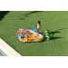 Wyjątkowym elementem tego produktu jest wbudowany spryskiwacz, który można łatwo podłączyć do standardowego węża ogrodowego. To rozwiązanie doskonale ochładza i orzeźwia w upalne dni, a także dostarcza mnóstwo frajdy, zamieniając zwykłą zabawę w wodzie w ekscytującą przygodę. Zjeżdżalnia wodna to kolejny element, który zachwyci każde dziecko. Dzięki niej maluchy mogą doświadczać emocji zjeżdżania wprost do basenu, co sprzyja rozwojowi ich motoryki oraz koordynacji ruchowej. Dodatkowa mata do lądowania zapewnia bezpieczeństwo i komfort, amortyzując lądowanie i minimalizując ryzyko kontuzji. W zestawie znajduje się również gra w rzucanie pierścieniami oraz 6 kolorowych piłek, które można umieszczać w specjalnych otworach na nadmuchiwanym dinozaurze. Te elementy dodatkowo stymulują rozwój umiejętności manualnych oraz koncentracji u dzieci, zamieniając czas spędzony na świeżym powietrzu w wartościową formę nauki poprzez zabawę.