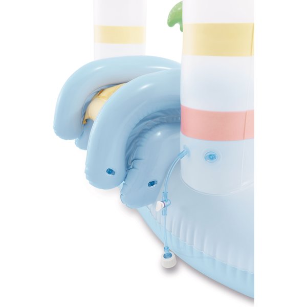 Nadmuchiwany plac zabaw w kształcie magicznego zamku jednorożca to idealne rozwiązanie dla dzieci, które marzą o wodnej przygodzie w przyjaznym, bajkowym otoczeniu. Dzięki zjeżdżalni z dodatkową wyściółką, maluchy mogą bezpiecznie bawić się i cieszyć zjazdami, a wbudowany prysznic zapewni orzeźwienie w upalne dni. Zestaw zawiera worek bokserski w kształcie jednorożca i piłki, które wspierają rozwój koordynacji oraz zachęcają do aktywnej zabawy. Nadmuchiwane elementy, takie jak palmy, dodają uroku i pobudzają wyobraźnię. Produkt jest łatwy do utrzymania w czystości dzięki zaworowi spustowemu i wykonaniu z trwałego PVC. Idealny dla dzieci od 2 roku życia.