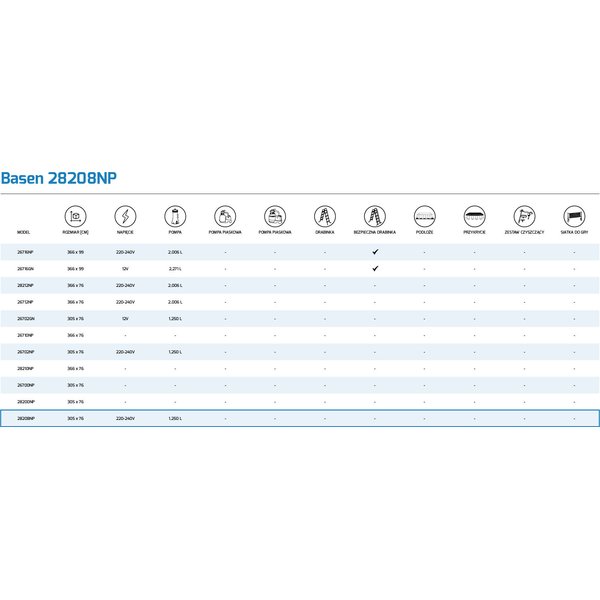 Pompa - zapewni krystaliczną czystość wody w Twoim basenie. Pompa posiada specjalne miejsce wyznaczone do zamontowania filtra. Dzięki niemu pompa nie tylko dostarczy odpowiednią ilość wody do Twojego basenu, ale także zapewni odpowiednią czystość. Filtry są wymienne i wymagają stałej kontroli stanu dla zapewnienia maksymalnej wydajności.