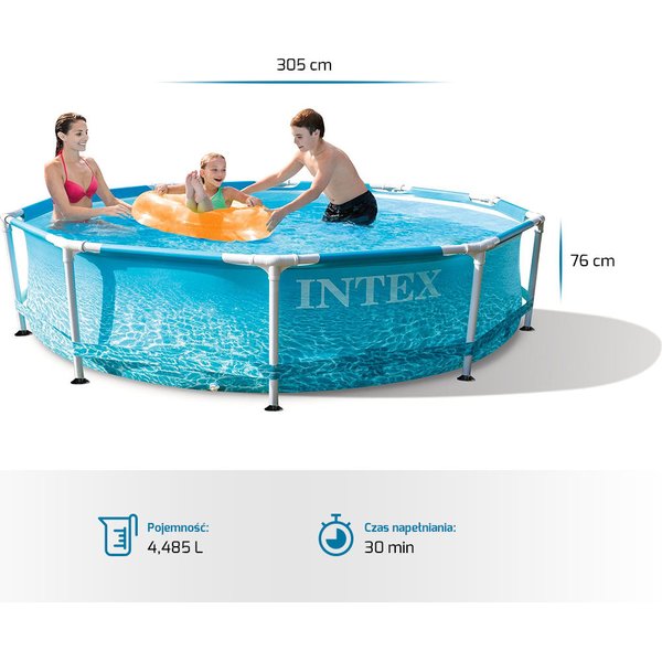 Basen stelażowy Ocean Metal Frame 305x76cm z pompą marki Intex to doskonały sposób na letnie upały.
