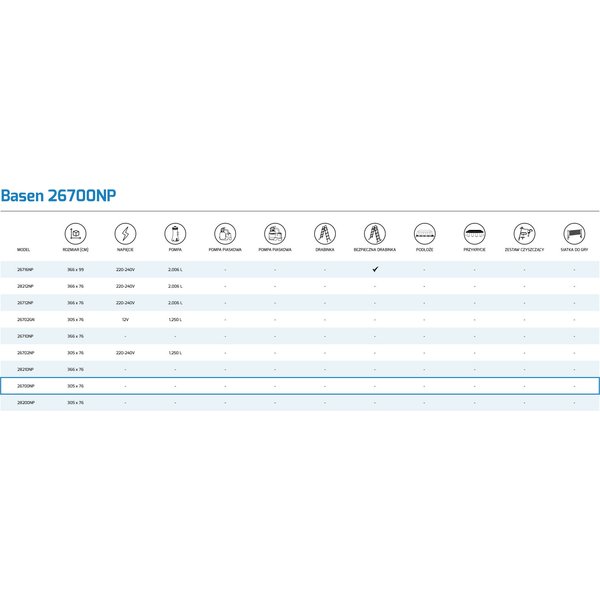 Basen 28700 jest łatwy i szybki w montażu oraz wytrzymały, dzięki czemu będzie służył przez długie lata. Duża pojemność basenu umożliwia jednoczesne korzystanie z niego kilku osobom, więc spokojnie zmieścisz się w nim z całą rodziną lub grupą przyjaciół.