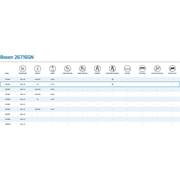 - niezbędne akcesoria umożliwiające korzystanie z basenu.