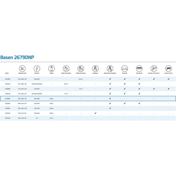 - w zestawie: basen, pompa filtrująca, dwustronna drabinka