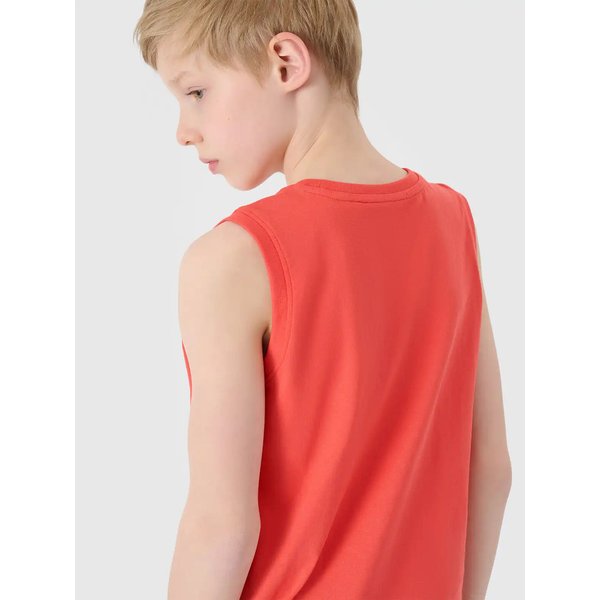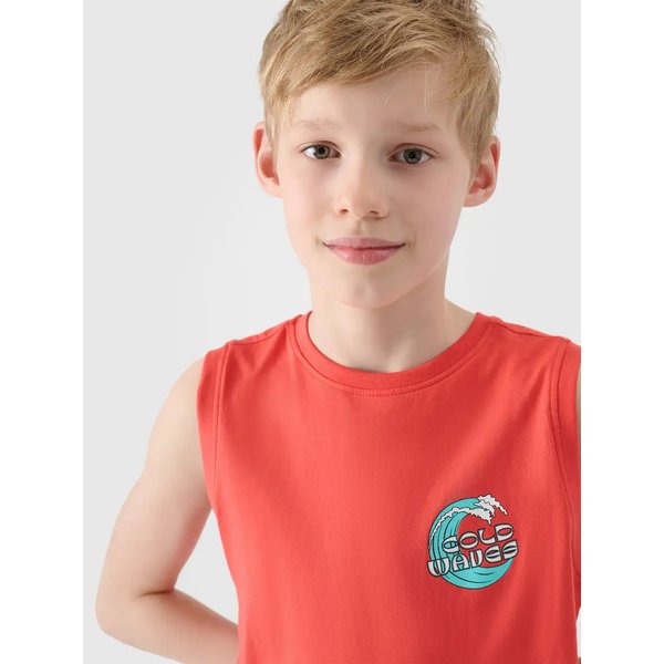 Bezrękawnik chłopięcy marki 4F to idealny wybór dla młodych miłośników swobodnego stylu. Wykonany w 100% z wysokiej jakości bawełny, zapewnia doskonałą przewiewność i komfort noszenia przez cały dzień. Dzianina single jersey sprawia, że materiał jest miękki i przyjemny w dotyku, nie podrażniając skóry. Okrągły dekolt i luźny krój gwarantują swobodę ruchów, co czyni go świetnym wyborem na aktywne dni. Stylowy nadruk z motywem fali dodaje charakteru i nowoczesnego wyglądu.
