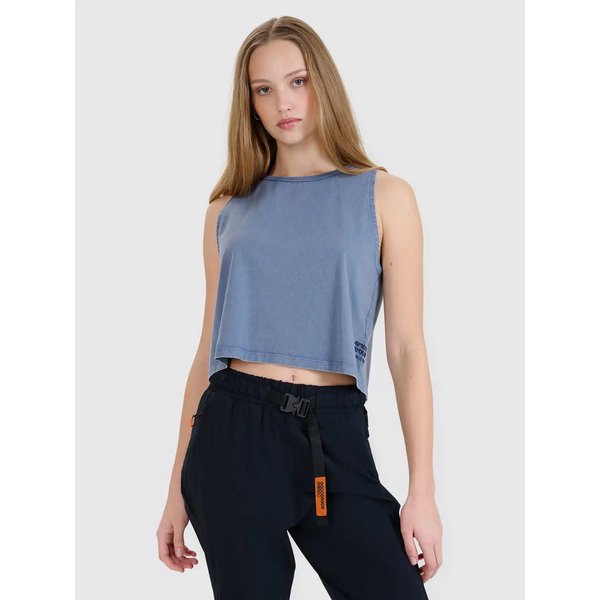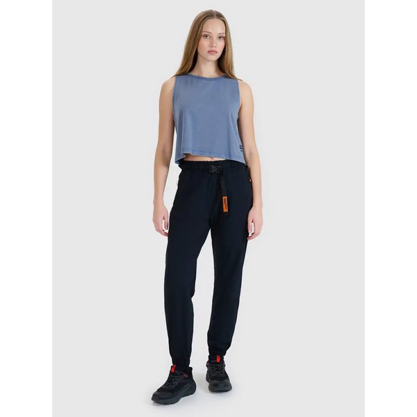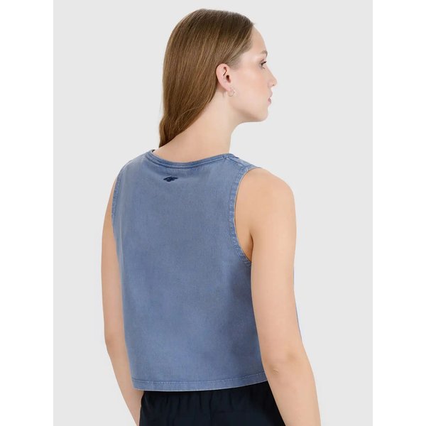 Damski bezrękawnik marki 4F to idealny wybór dla kobiet ceniących styl i wygodę. Dzięki regularnemu krojowi z szerokimi otworami na ramiona, doskonale dopasowuje się do sylwetki, zapewniając swobodę ruchów, co czyni go idealnym zarówno na co dzień, jak i na trening. Wykonany w 100% z miękkiej bawełny, jest przyjemny w dotyku i trwały, co gwarantuje jego długą żywotność. Materiał nie prześwituje, a jednocześnie pozostaje elastyczny dzięki splotowi single jersey. Okrągły dekolt z lekkim ribowaniem dodaje elegancji, a nadruk z koordynatami geograficznymi nadaje mu oryginalności. Jest to produkt, który łączy styl z funkcjonalnością.