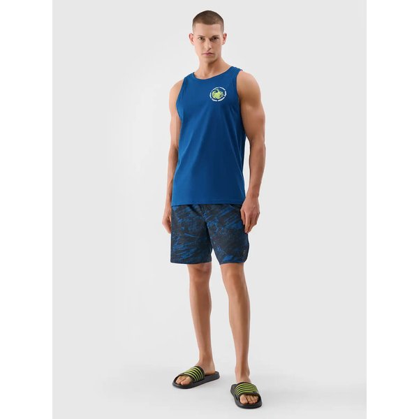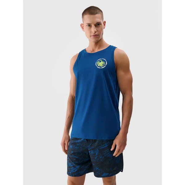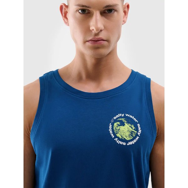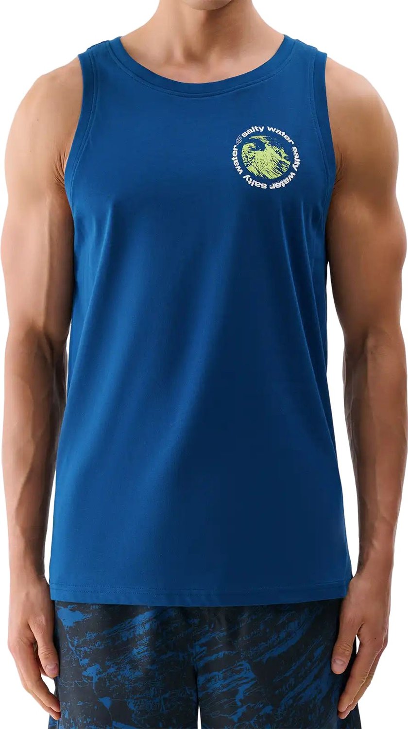 Bezrękawnik męski marki 4F to doskonały wybór dla osób ceniących wygodę i styl. Wykonany z organicznej bawełny, zapewnia niezwykłą miękkość i przewiewność, co czyni go idealnym na ciepłe dni. Gładki materiał typu dzianina single jersey jest nie tylko przyjemny w dotyku, ale także trwały i odporny na codzienne użytkowanie. Dopasowany krój podkreśla sylwetkę, dodając elegancji i nowoczesności. Okrągły dekolt zapewnia swobodę ruchów, a nadruk podkreśla wysoką jakość produktu. Bezrękawnik doskonale pasuje do wielu stylizacji, zarówno sportowych, jak i casualowych.