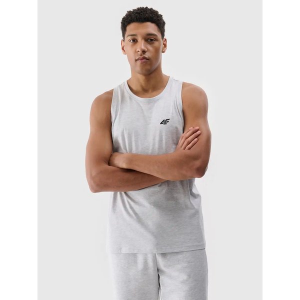Bezrękawnik męski marki 4F to idealny wybór dla mężczyzn ceniących sobie komfort i swobodę ruchu. Wykonany z wysokiej jakości dzianiny single jersey, łączy w sobie przewagę naturalnej bawełny z domieszką wiskozy, co zapewnia miękkość i oddychalność. Prosty krój oraz dopasowanie do sylwetki podkreślają męską figurę, a klasyczny, okrągły dekolt dodaje uniwersalnego stylu. Gładki materiał oraz logo na piersi sprawiają, że bezrękawnik pasuje zarówno do sportowych, jak i casualowych stylizacji. Jego długość do bioder sprawia, że jest to komfortowy wybór na co dzień.