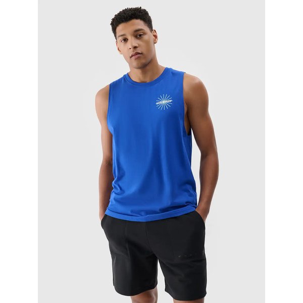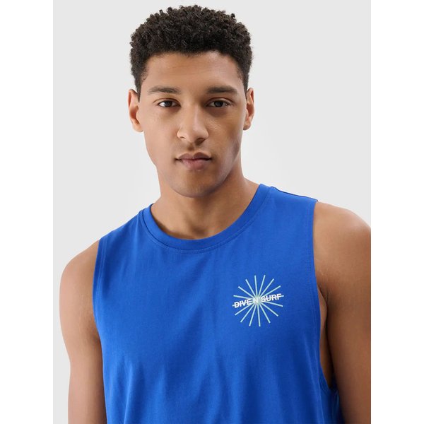 Bezrękawnik męski od marki 4F to doskonałe połączenie wygody i stylu, idealne na każdą okazję. Dzięki krojowi regular, dopasowuje się do sylwetki i oferuje komfort noszenia przez cały dzień. Wykonany w 100% z miękkiej, trwałej bawełny, zapewnia przyjemne uczucie na skórze oraz nieograniczoną swobodę ruchów. Okrągły dekolt z delikatnym ribowaniem dodaje klasycznego uroku, jednocześnie utrzymując luźny, nowoczesny wygląd. Materiał o gramaturze 180 gsm gwarantuje solidność, chroniąc przed prześwitywaniem. Stylowy nadruk na przodzie doda charakteru każdej stylizacji, czyniąc z tej koszulki niezastąpiony element garderoby.