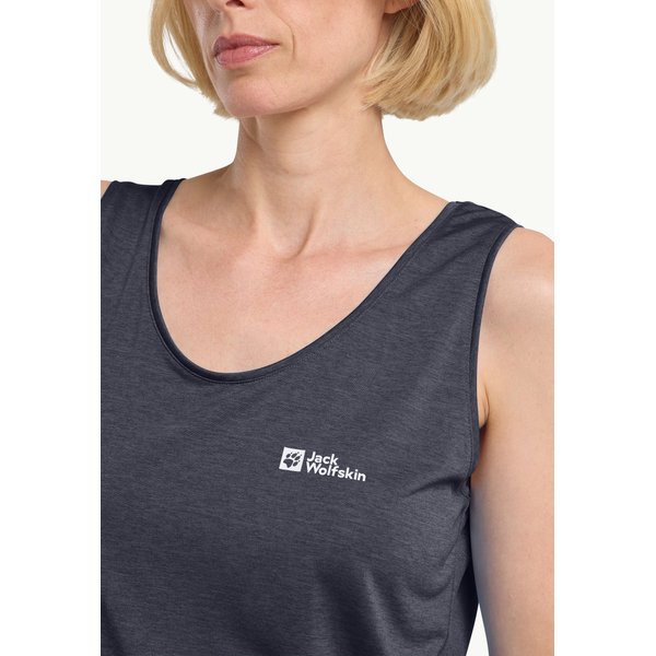 Bezrękawnik i top damski Crosstrail Jack Wolfskin to doskonały wybór dla aktywnych kobiet ceniących komfort i funkcjonalność podczas treningu oraz codziennych aktywności.