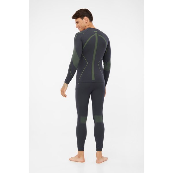 Niezależnie od tego, czy użytkownik uprawia intensywne sporty, czy też korzysta z bielizny na co dzień, zawsze może liczyć na pełen komfort i brak ograniczeń w ruchach. Wizualnie zestaw wyróżnia się nowoczesnym designem, który łączy funkcjonalność z estetyką. Długie rękawy koszulki oraz długie spodnie zapewniają pełną ochronę przed chłodem. Geometryczne wzory na powierzchni tkaniny dodają charakteru i dynamiki, co czyni komplet atrakcyjnym wizualnie.