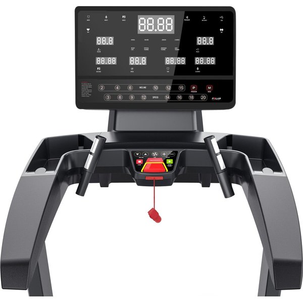 - pomiar pulsu za pomocą czujników pomiaru tętna na uchwytach oraz telemetrycznie za pomocą opaski na klatkę piersiową