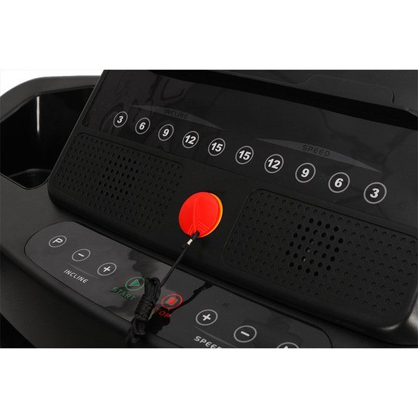 Bieżnia Cerrus posiada masywną i stabilną konstrukcję, która nie pozwoli się chwiać, czy przewracać, nawet podczas bardzo szybkich biegów - Twoje bezpieczeństwo jest najważniejsze. Została wyposażona w kółka, które ochronią podłoże przed uszkodzeniami mechanicznymi podczas transportu, więc o to nie musisz się martwić. Możliwość złożenia do pionu to także duży atut. Zaoszczędzisz miejsce i w łatwy sposób przeniesiesz bieżnię w inny kąt. Bieżnia posiada także dwie półki na najpotrzebniejsze drobiazgi, by mieć zawsze wszystko pod ręką. Miejsce na bidon sprawi, że nie będziesz musiał przerywać treningu, by ugasić swoje pragnienie, a podstawka na telefon komórkowy, czy tablet zaspokoi Twoją ciekawość. Magnetyczny klucz bezpieczeństwa dołączony do bieżni Cerrus zapewni Ci pewność i komfort podczas aktywności fizycznej, a głośniki stereo, czy podświetlany wyświetlacz umilą Ci czas i dodadzą jeszcze więcej przyjemności podczas użytkowania.