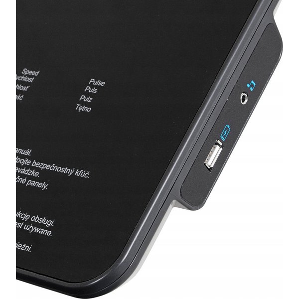 Model o wymiarach 155 x 78 x 125 centymetrów po złożeniu zajmuje mniej miejsca, dzięki czemu z łatwością znajdziesz dla niego przestrzeń nawet w niewielkim mieszkaniu. Przemieszczanie bieżni ułatwiają rolki transportowe. Poręczne uchwyty mają wbudowane dotykowe sensory pulsu. Duża przestrzeń do biegania pozwala na naturalny ruch, zbliżony do joggingu na zewnątrz. Inteligentny komputer pozwala na synchronizację z tabletem lub smartfonem i korzystanie z różnych aplikacji fitness, które urozmaicają trening. Spory zakres prędkości od 0,8 km/h do biegu 18 km/h sprawia, że z bieżni może korzystać zarówno osoby o słabej kondycji, jak i stali biegacze. Z pewnością znajdziesz idealny dla siebie program spośród aż 22, w tym 5 programów HRC, czyli opartych na tętnie. Dwunastostopniowa regulacja nachylenia umożliwia dostosowanie intensywności treningu do swoich oczekiwań. Przejrzysty wyświetlacz pokazuje takie parametry jak czas, dystans, prędkość, puls, spalone kalorie. Pulpit jest czytelny, prędko i z łatwością nauczysz się jego obsługi. Uchwyt na tablet lub smartfon i port USB do ładowania, a także wbudowane głośniki i gniazdo audio dla słuchawek sprawia, że podczas treningu możesz bez ograniczeń korzystać ze swoich ulubionych multimediów. Z przodu znajduje się także uchwyt na butelkę, dzięki czemu będziesz pamiętał o nawodnieniu w czasie treningu.
