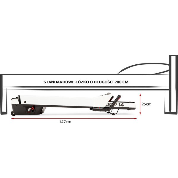 Nowoczesne rozwiązania oraz solidne komponenty pozytywnie wpływają na jakość aktywności oraz bezpieczeństwo. Pas bieżni poza powłoką antypoślizgową posiada również wewnętrzną amortyzację z elastomerami, która została rozłożona na całej długości. Pochłania ona wszelkie drgania, które często negatywnie wpływają na stawy kolanowe oraz biodrowe. Wbudowany z przedniej części czytelny ekran, monitoruje przebieg każdego treningu, wskazując takie parametry jak czas, prędkość, dystans, ilość kroków czy spalone kalorie. Dodatkowo, na uchwytach znajdując się funkcjonalne przyciski startu, zakończenia oraz zmiany prędkości, która w najwyższym punkcie osiąga 14 km/h.