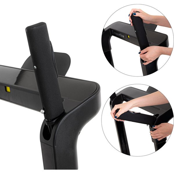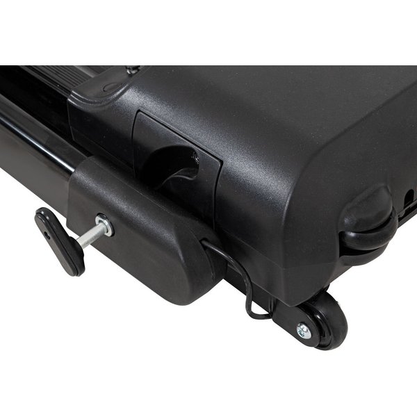 Solidna konstrukcja posiada rączki z czujnikami mierzącymi tętno. Intuicyjna konsola jest prosta w obsłudze, spośród 15 programów z łatwością wybierzesz ten najbardziej odpowiedni dla Ciebie. Podświetlany wyświetlacz pozwala śledzić następujące parametry: dystans, czas, kalorie, kroki, prędkość, tętno. Maszynę możesz zintegrować ze swoim tabletem lub smartfonem poprzez aplikacje odpowiednie zarówno dla systemów iOS, jak i Android takie jak Zwift, Zwift Companion i Kinomap. Pozwalają one dzielić się swoimi wynikami online, komunikację z innymi ćwiczącymi, a także trening w formie wirtualnej gry 3D. Dzięki uchwytowi na tablet podczas treningu możesz przeglądać Internet, oglądać ulubione seriale i filmy lub słuchać muzyki w czym pomagają również wbudowane głośniki. Wbudowany port USB sprawia, że możesz ładować telefon lub tablet korzystając z niego podczas treningu. Praca bieżni jest niemal bezgłośna, dlatego idealnie sprawdzi się w mieszkaniach, trening nie powinien przeszkadzać domownikom i sąsiadom. Złożona bieżnia zajmuje mniej miejsca, dlatego z łatwością znajdziesz odpowiednie miejsce do przechowywania dla tego kompaktowego modelu. Maksymalne obciążenie dla bieżni wynosi 120 kilogramów, a jednorazowy trening nie powinien przekraczać dwóch godzin.