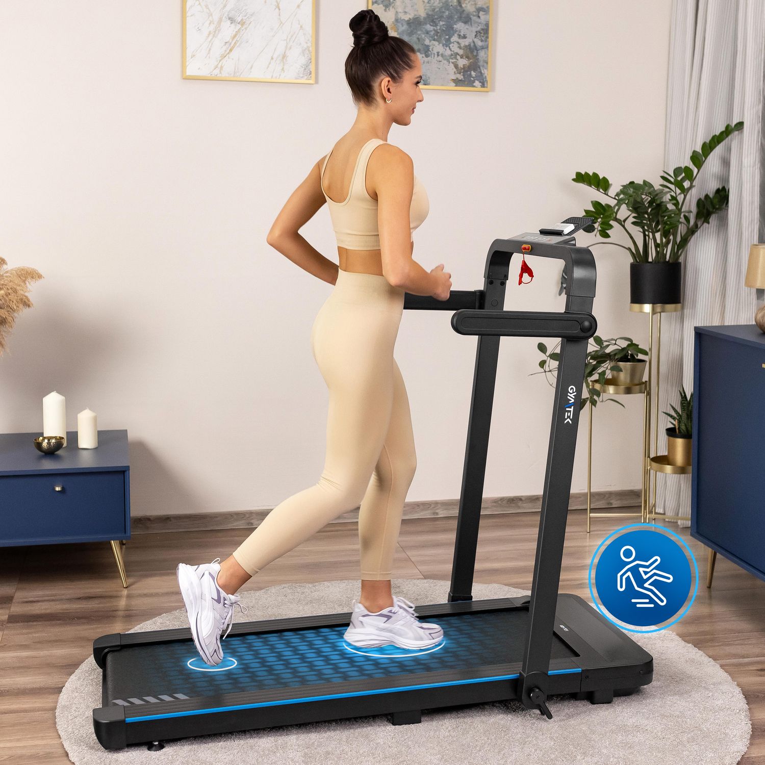 - Prędkość do 12 km/h: Silnik o mocy do 2,5 HP umożliwia płynną pracę bieżni.