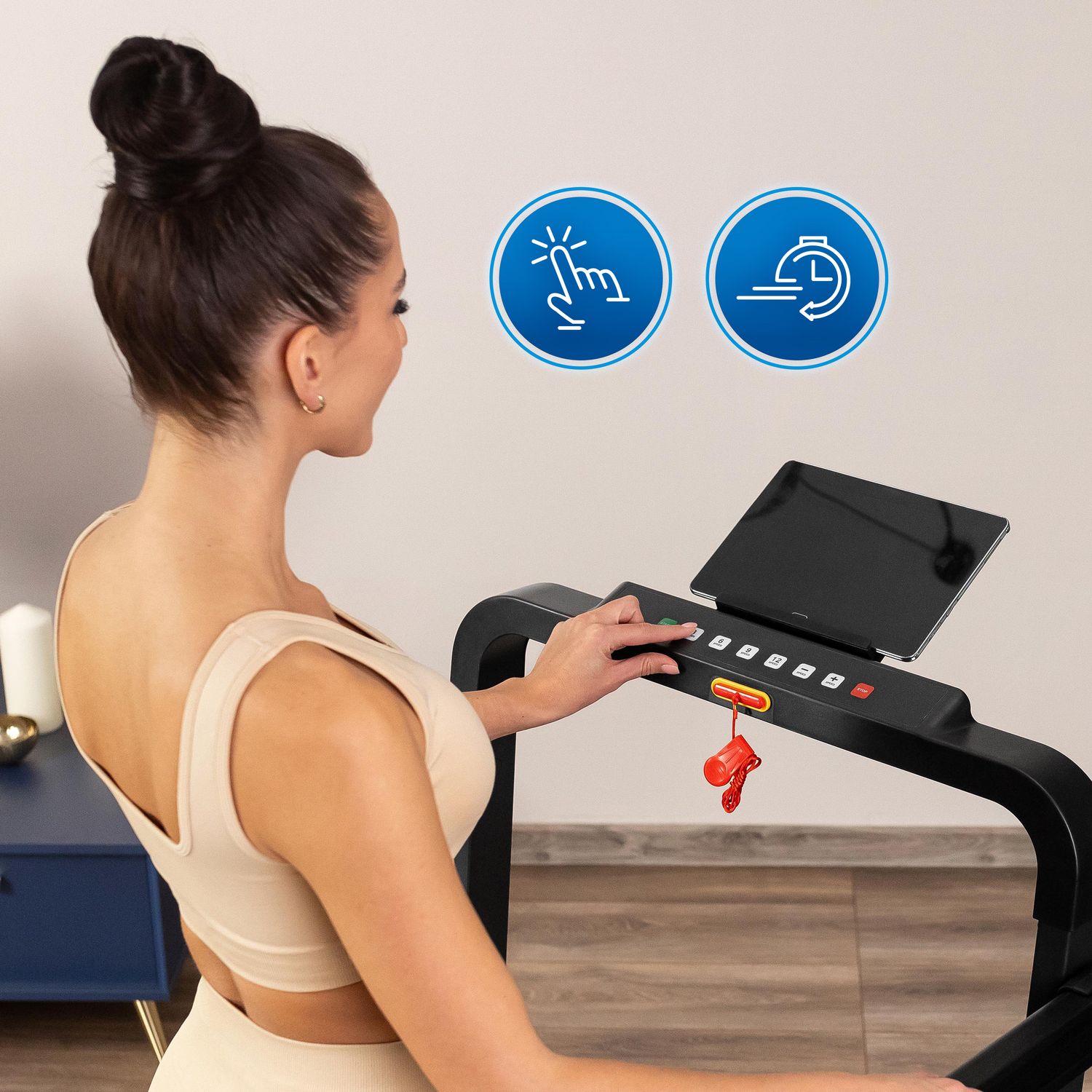 - Wygodna zmiana tempa: Za pomocą jednego przycisku można błyskawicznie dopasować prędkość, co przekłada się na większy komfort podczas treningu.