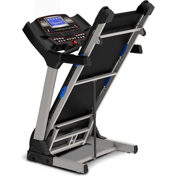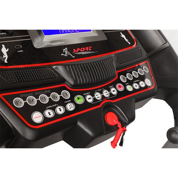 Bieżnia ma możliwość złożenia do pionu, dlatego bez trudu przechowasz ją w mieszkaniu. Konstrukcja jest masywna i stabilna. Podczas treningu możesz słuchać muzyki poprzez wykorzystanie funkcji AUX, USB i głośników stereo. Atutem jest podświetlany wyświetlacz LCD, na którym zobaczysz najważniejsze parametry swoich treningów.