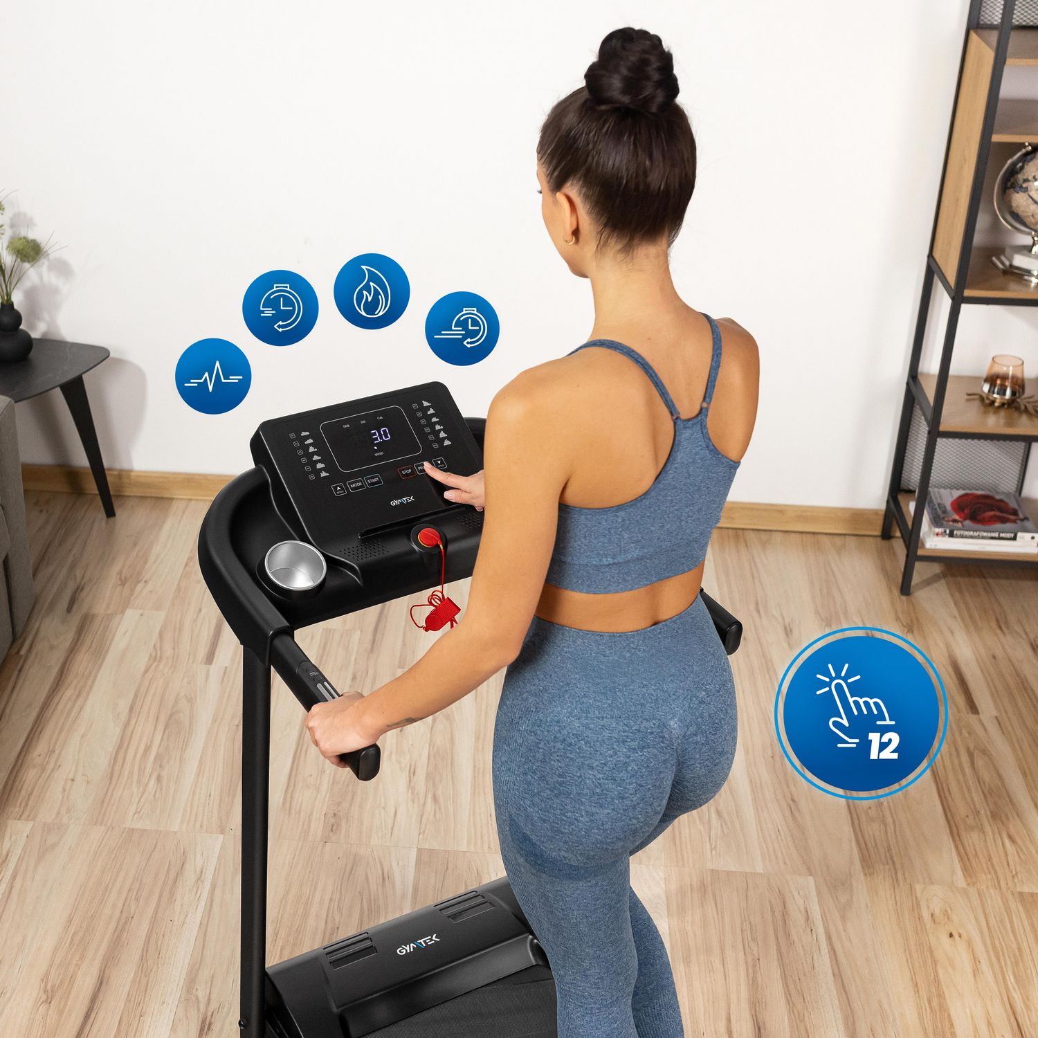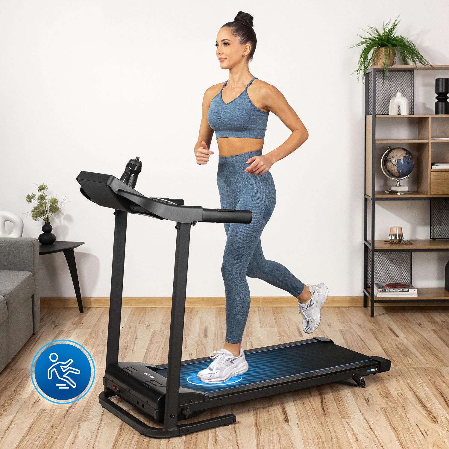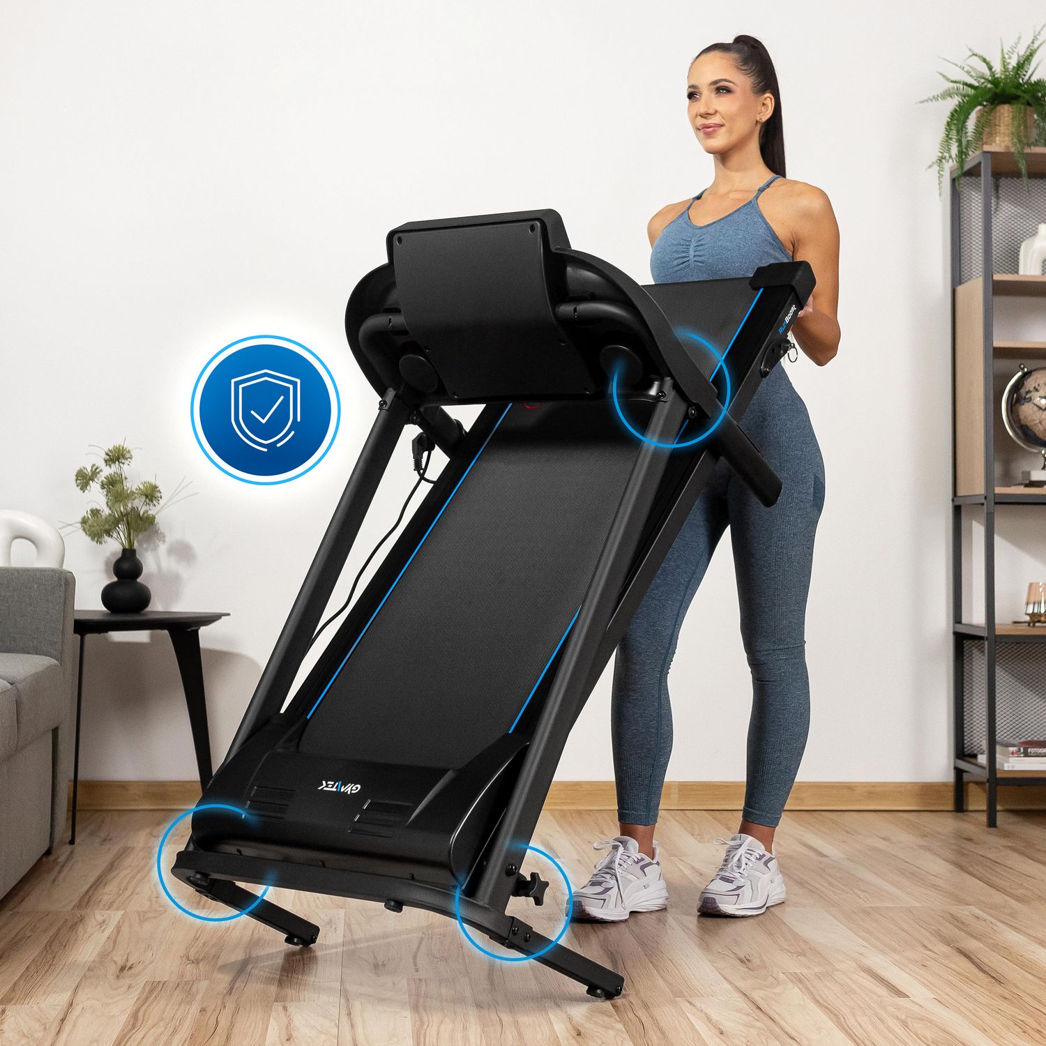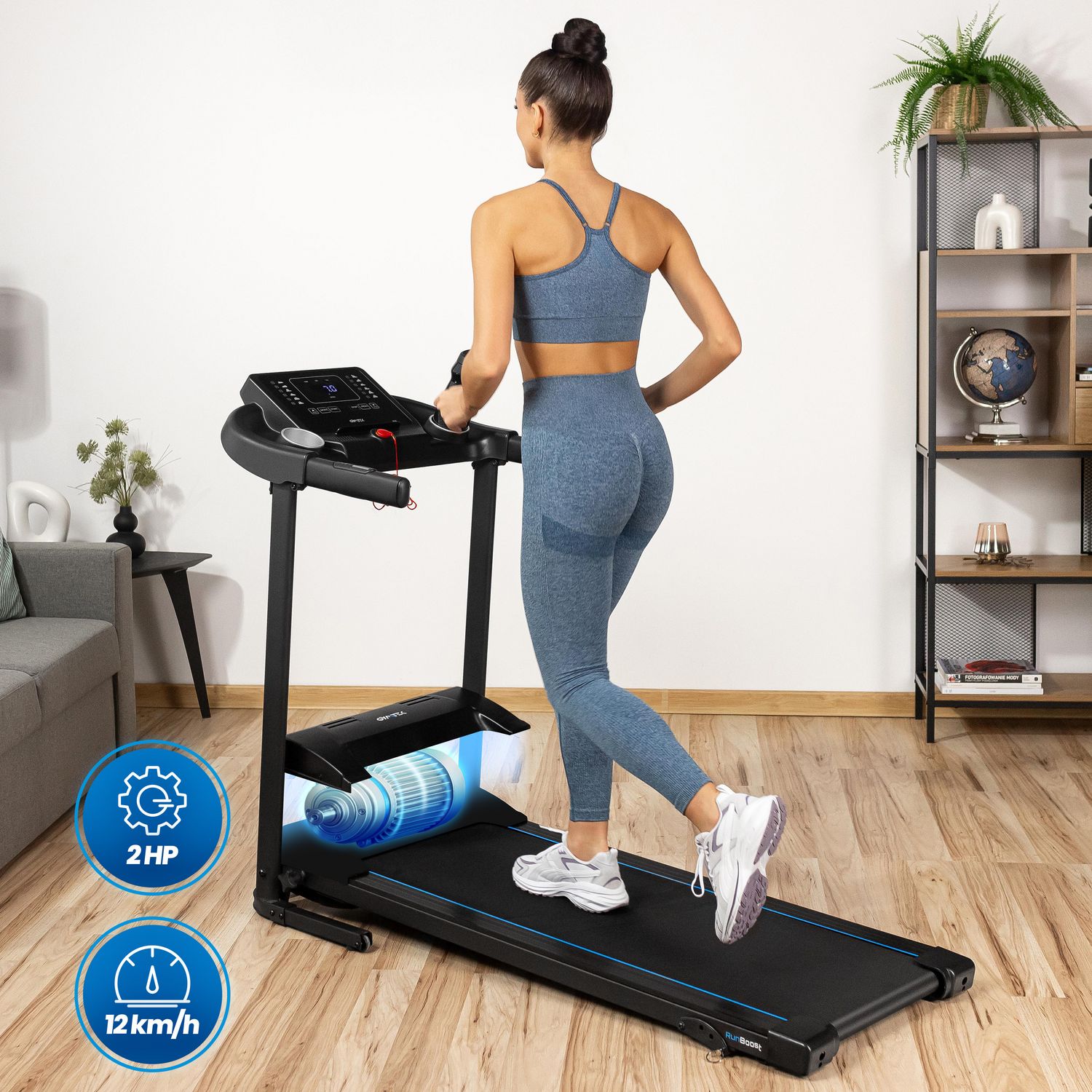 - Prędkość do 12 km/h: Silnik o mocy do 2,0 HP umożliwia płynną pracę bieżni.