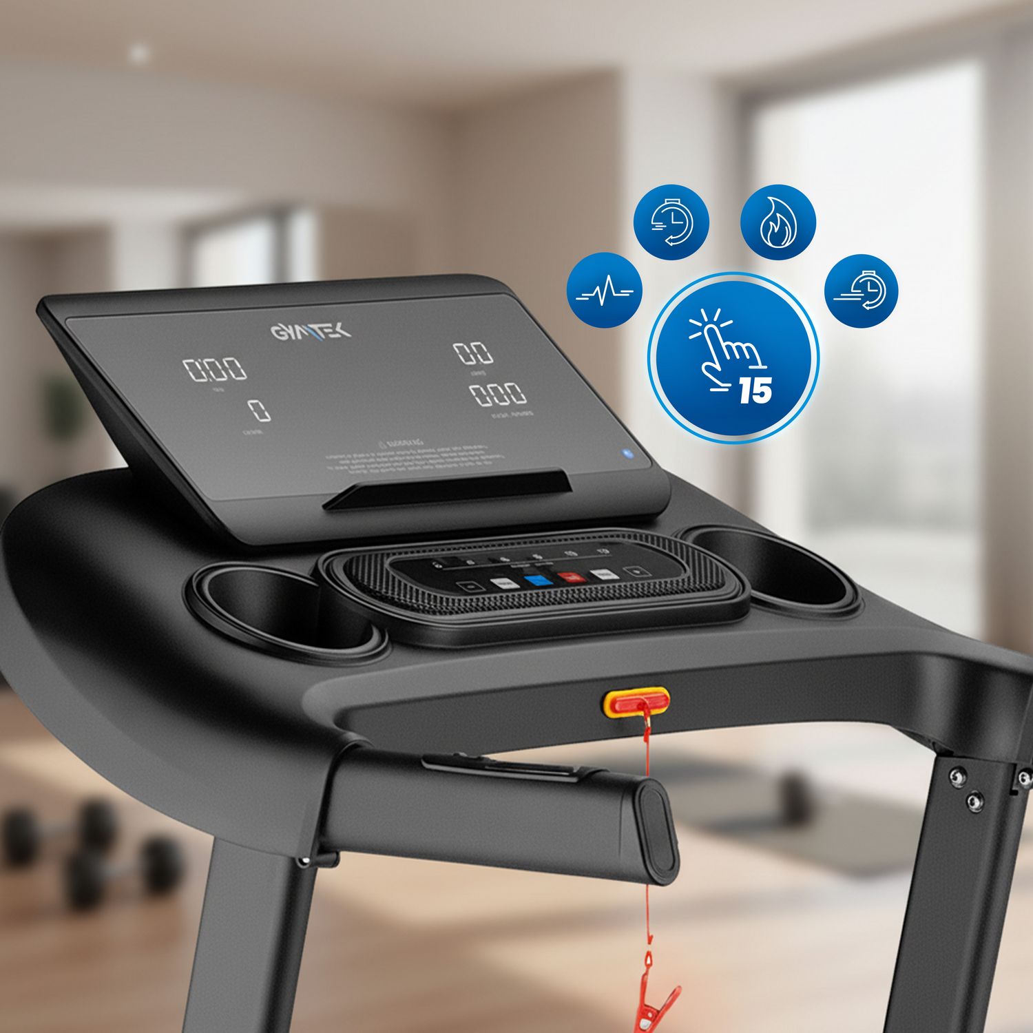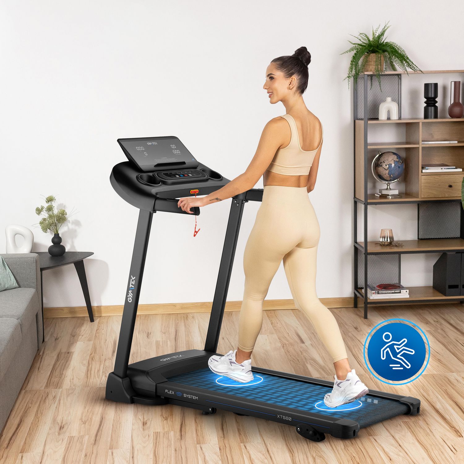 - Antypoślizgowy pas biegowy: Zapewnia maksymalną przyczepność podczas biegu, niezależnie od tempa i obuwia użytkownika.