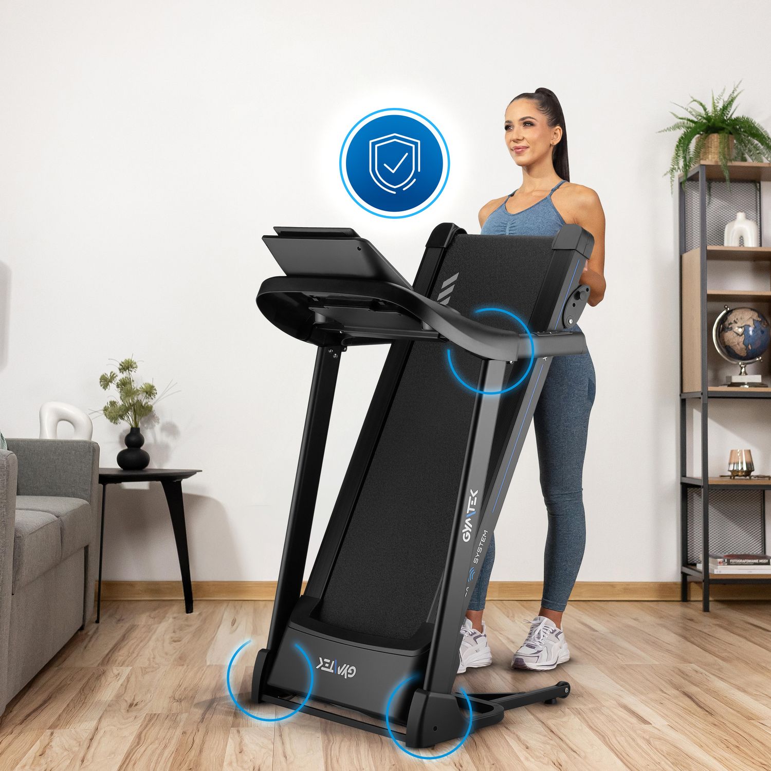 - System Hydraulic Folding Assistance: Ułatwia składanie bieżni, oszczędzając miejsce w domu. Minimalizuje ryzyko uszkodzeń sprzętu i kontuzji użytkownika.