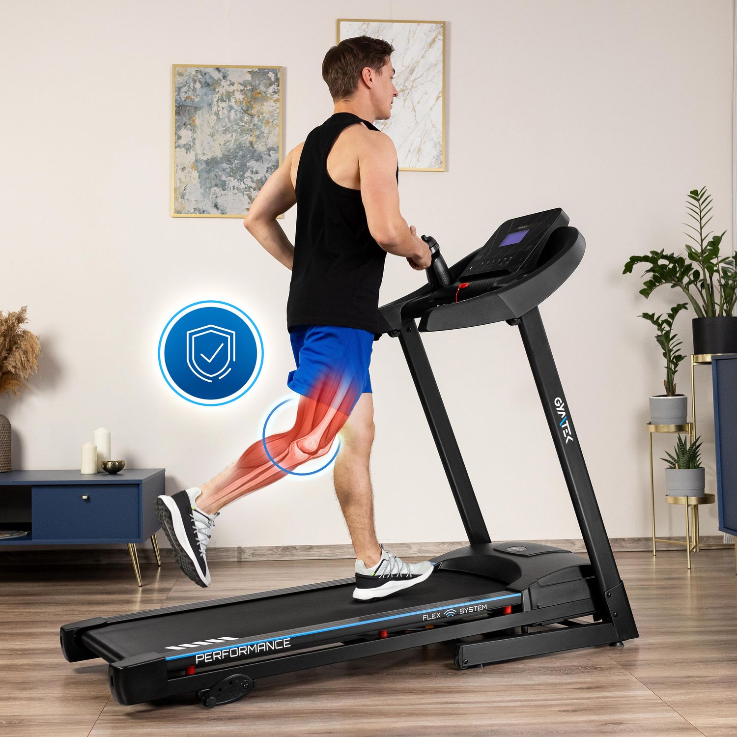 - Flex System: System amortyzacji wstrząsów skutecznie redukuje obciążenie stawów, dzięki zastosowaniu 6 absorbującym elastomerów.