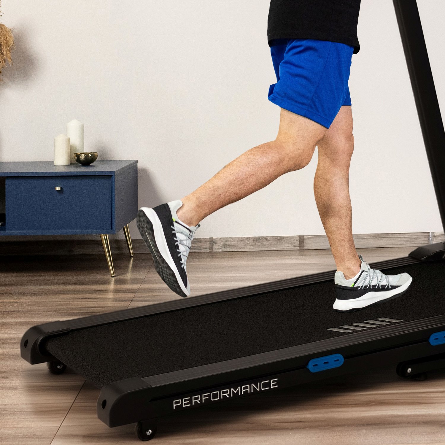 - Oszczędność miejsca: Możliwość szybkiego złożenia bieżni po treningu sprawia, że łatwo ją przechowywać nawet w niewielkich pomieszczeniach.