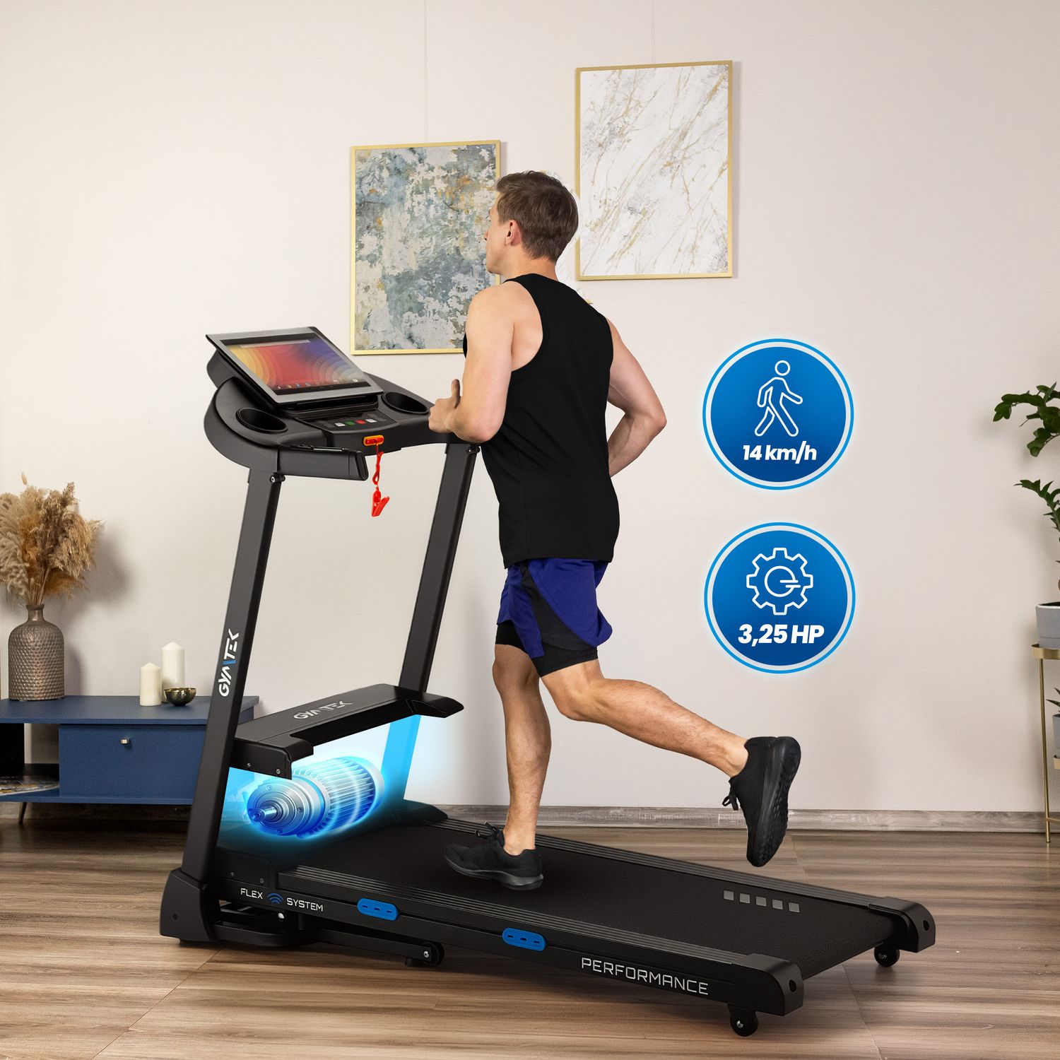 - Prędkość do 14 km/h: Silnik o mocy do 3,25 HP gwarantuje płynną i stabilną pracę bieżni.