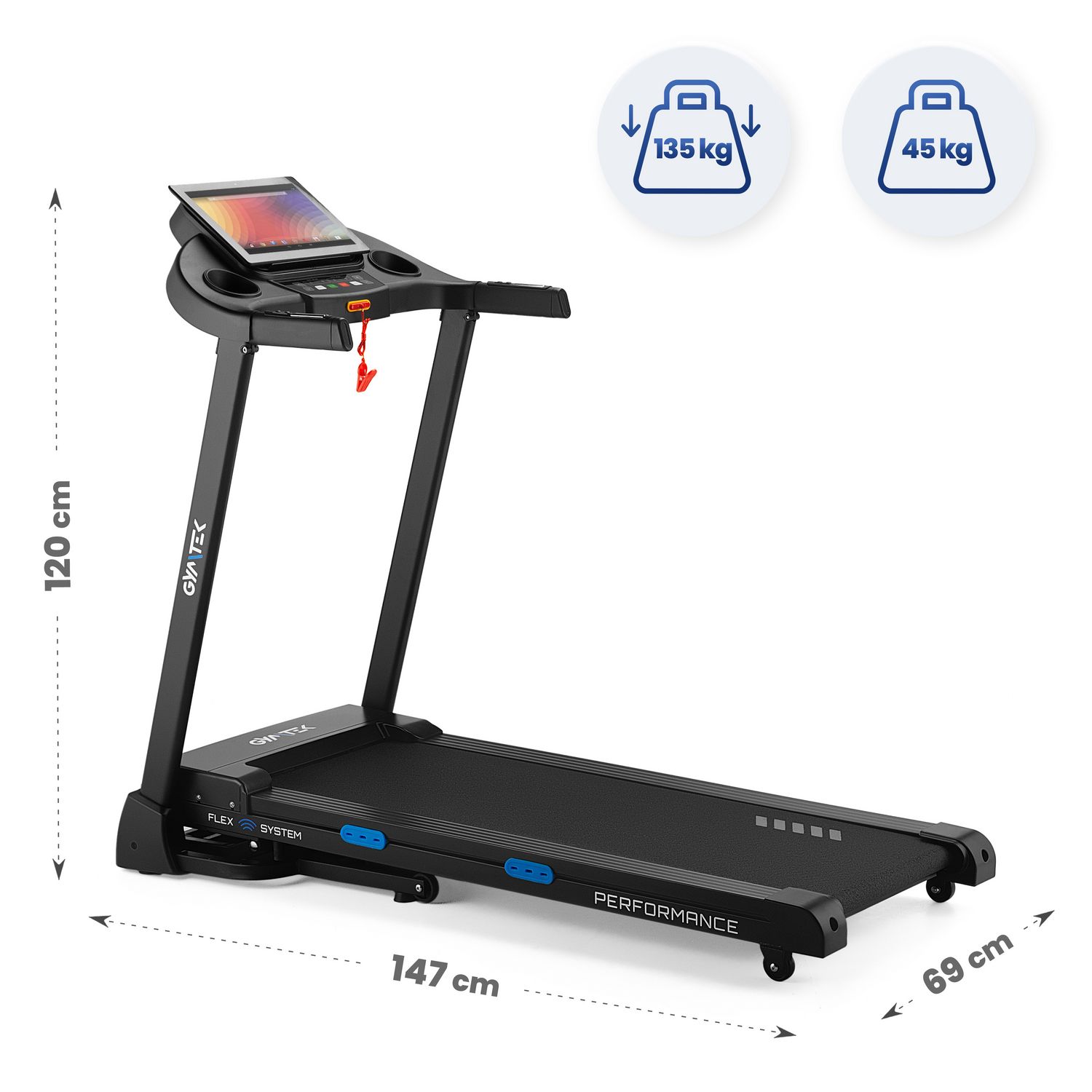 - wymiary bieżni po rozłożeniu: 120 x 69 x 147 cm
