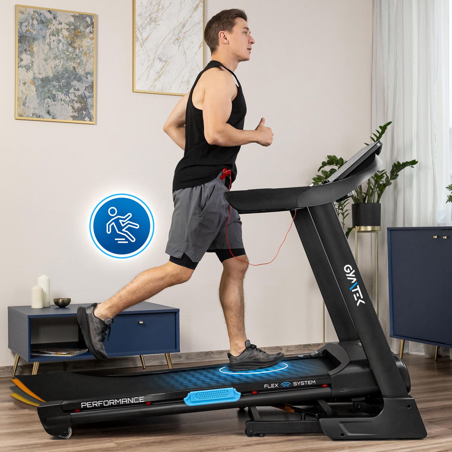 Speed Flex to zaawansowany system dynamicznej regulacji prędkości, który umożliwia płynną zmianę tempa biegu co 3 km/h w zakresie od 3 do 18 km/h – wystarczy nacisnąć jeden przycisk. Dzięki temu rozwiązaniu można zyskać pełną kontrolę nad intensywnością treningu, co pozwala na błyskawiczne dostosowanie wysiłku do własnych potrzeb.