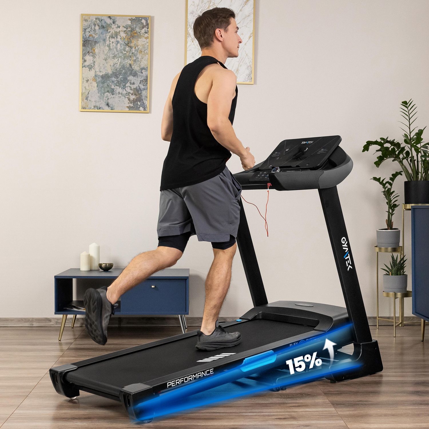 - Automatyczna regulacja nachylenia do 15%: Pozwala na intensywny trening pod górkę, wzmacniając mięśnie (regulacja co 1%).