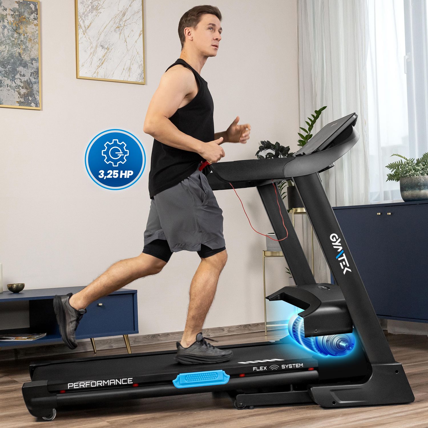 Silnik o mocy do 3,25 HP zapewnia dynamiczną pracę, umożliwiając osiąganie prędkości do 16 km/h. Dzięki stabilnej konstrukcji i szerokiemu zakresowi prędkości sprzęt idealnie sprawdza się zarówno w codziennych treningach, jak i w intensywnych sesjach biegowych.