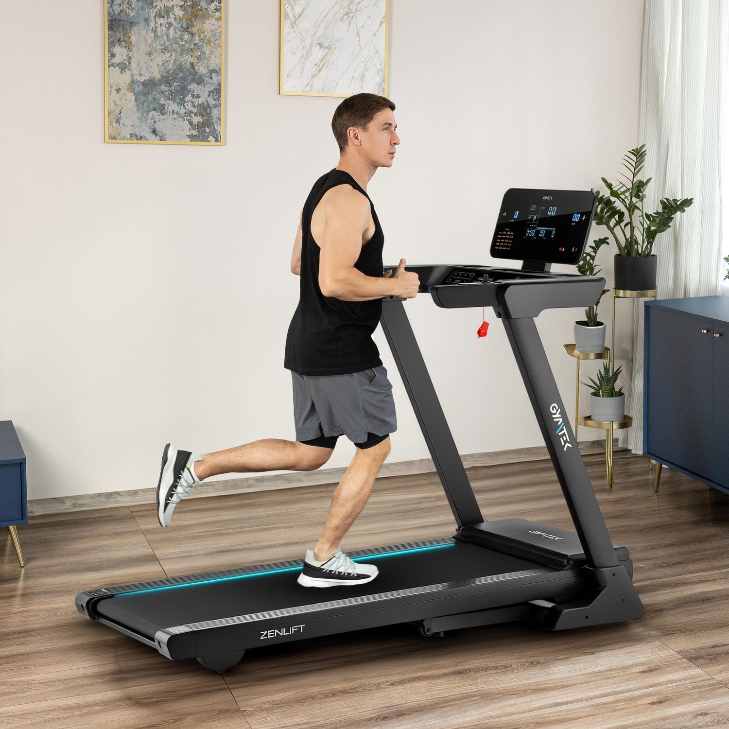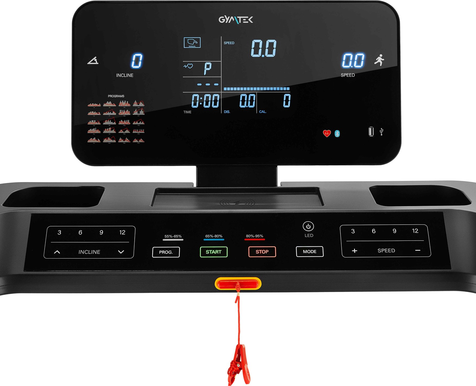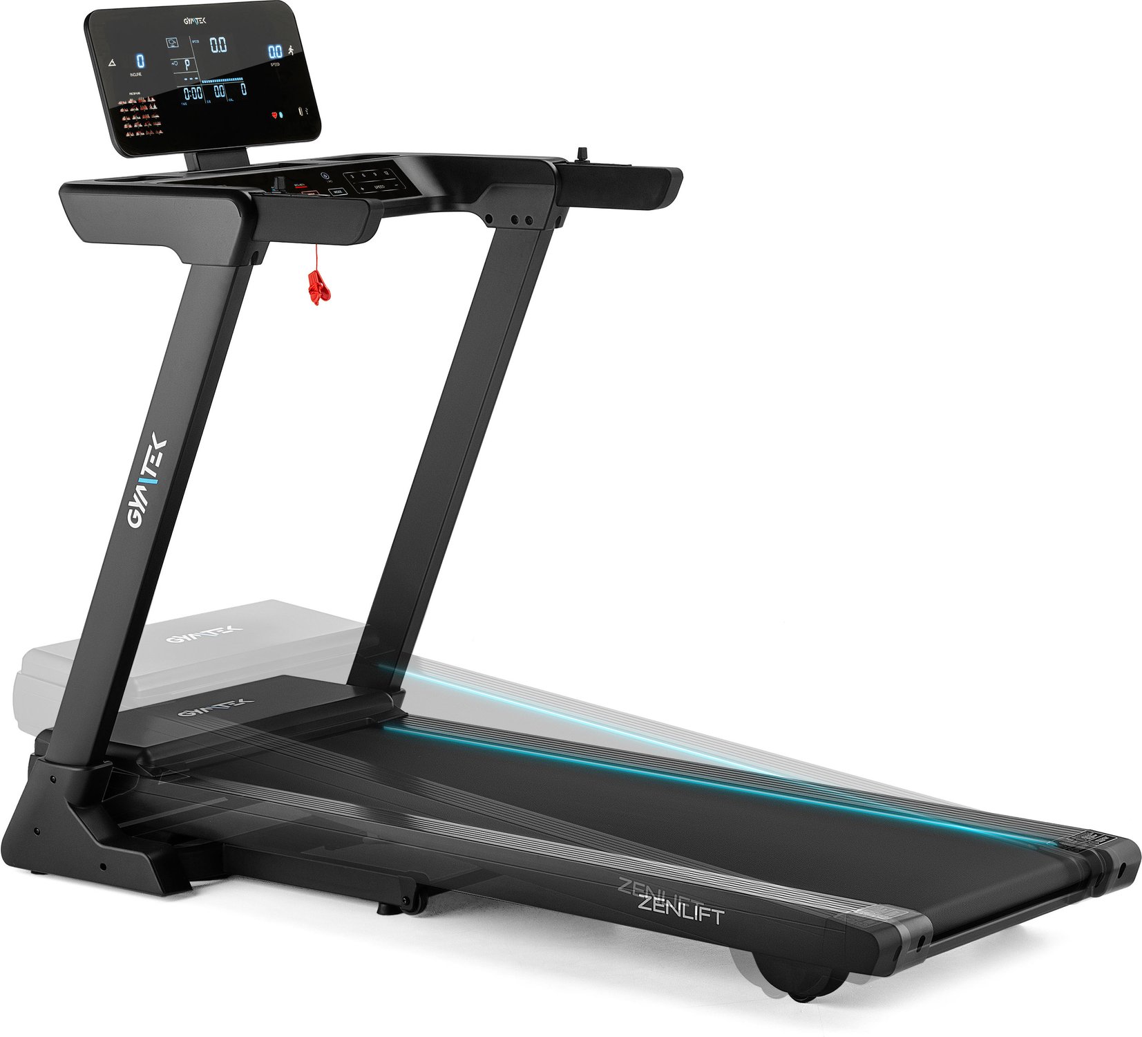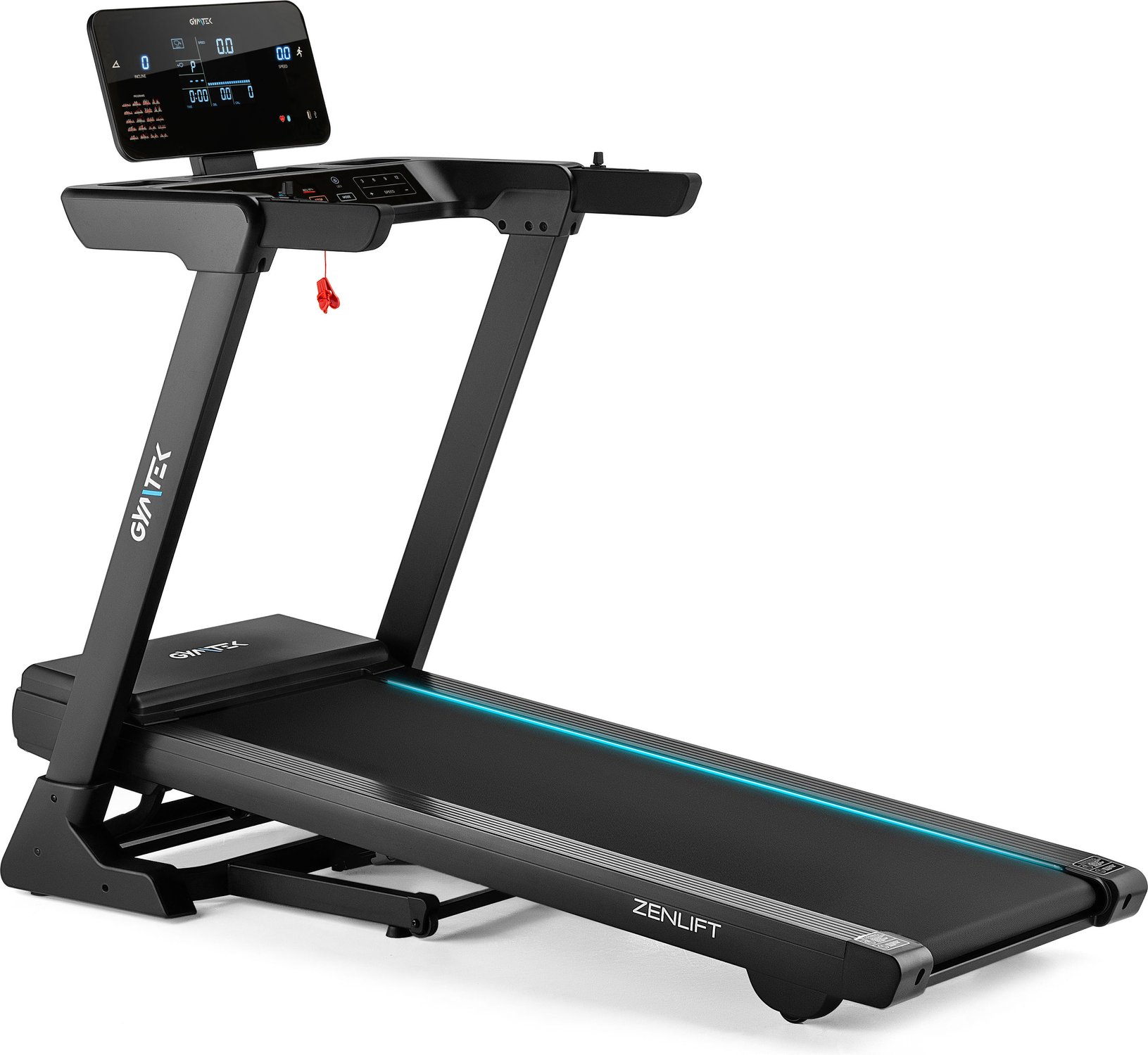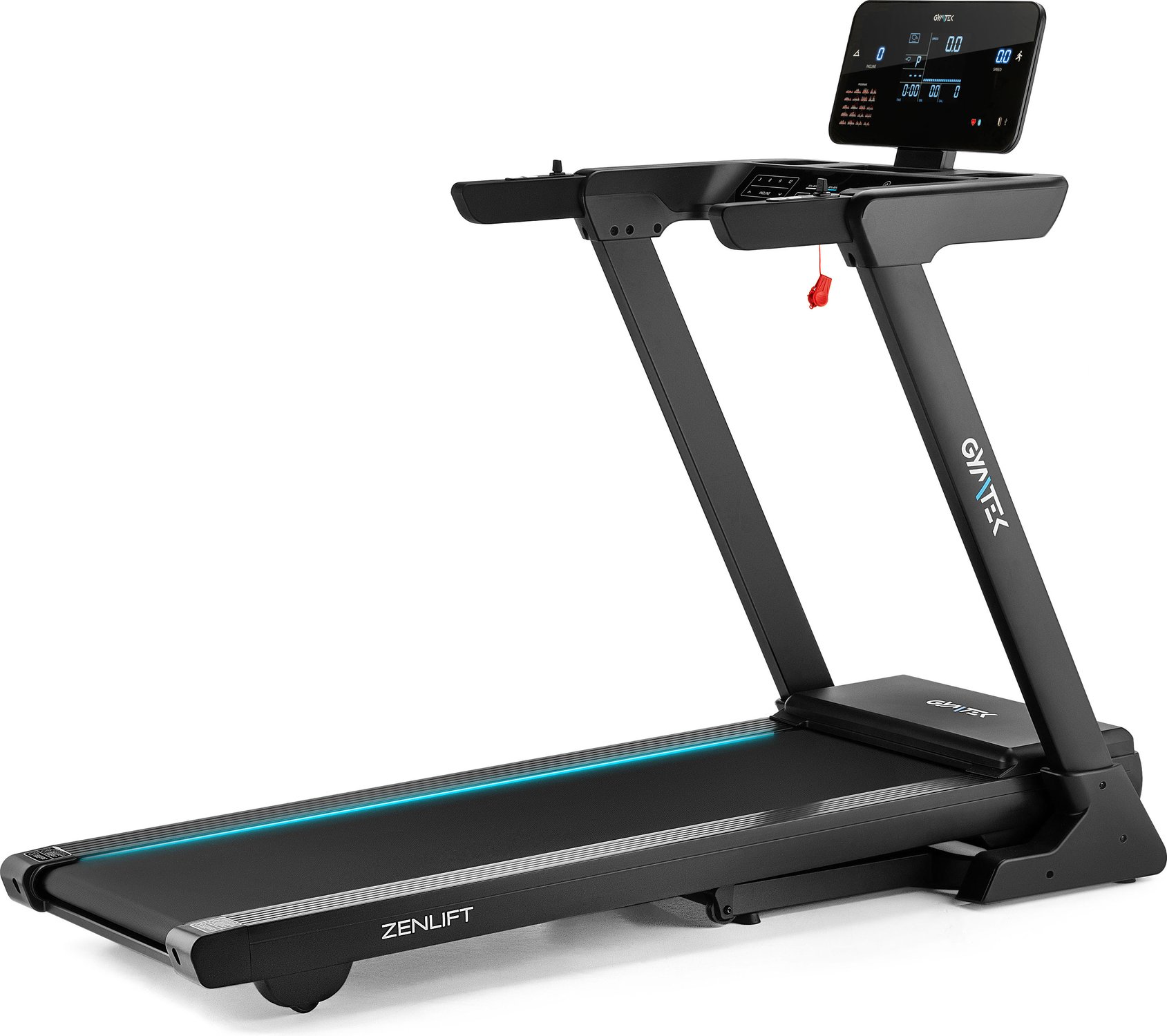 - Światła LED podświetlające pas bieżny w 3 kolorach: Do wyboru niebieskie, czerwone lub granatowe. Z powodzeniem urozmaicą każde wyzwanie treningowe.