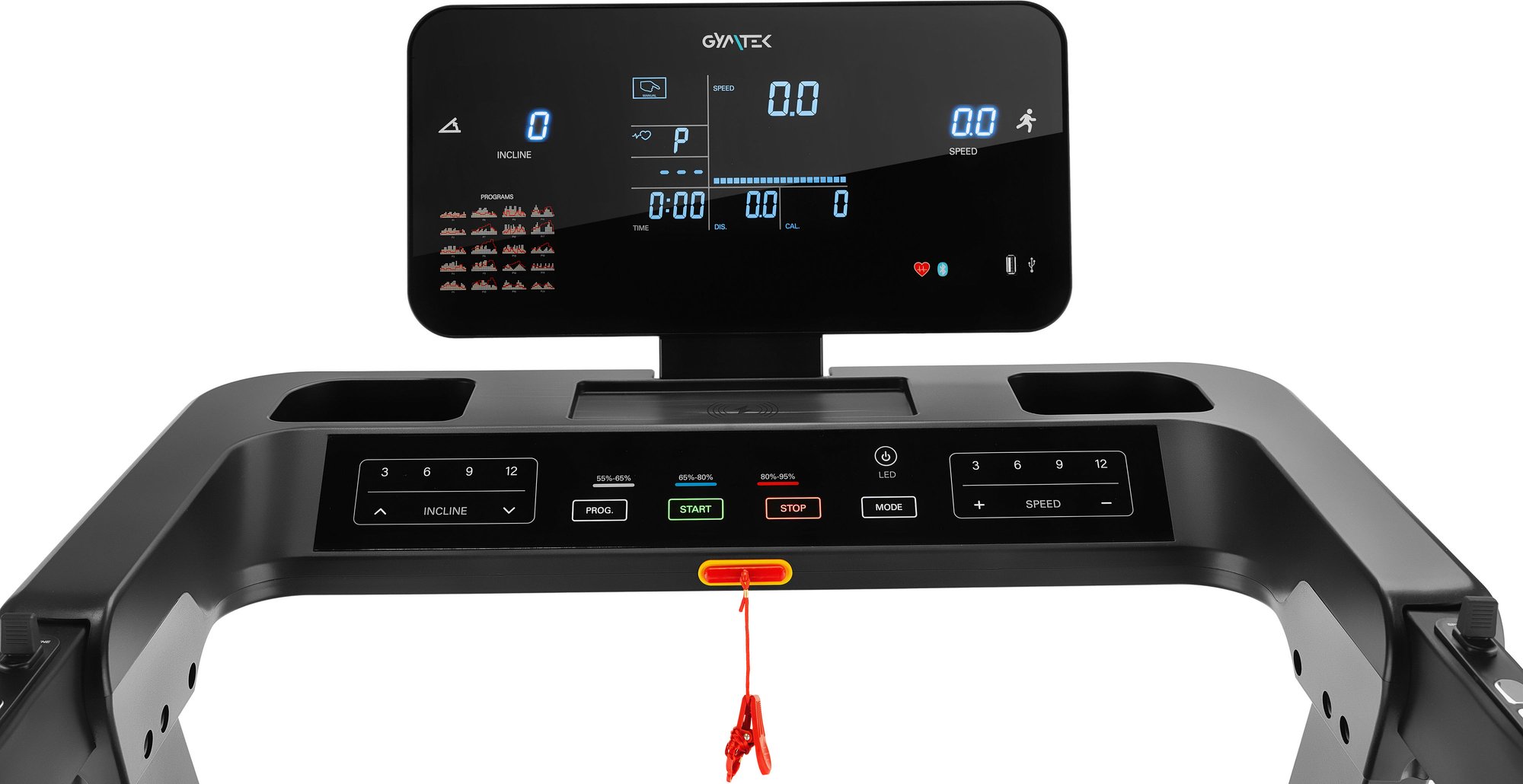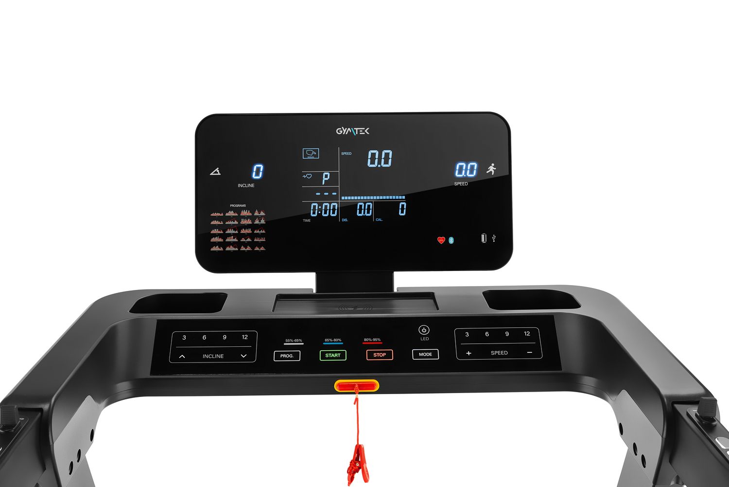 Wytrzymała konstrukcja bieżni zapewnia stabilność podczas intensywnego treningu, a praktyczne rozwiązania – takie jak intuicyjny panel sterowania czy ergonomiczne uchwyty – ułatwiają codzienne użytkowanie. Całość została zaprojektowana z myślą o komforcie i niezawodności.