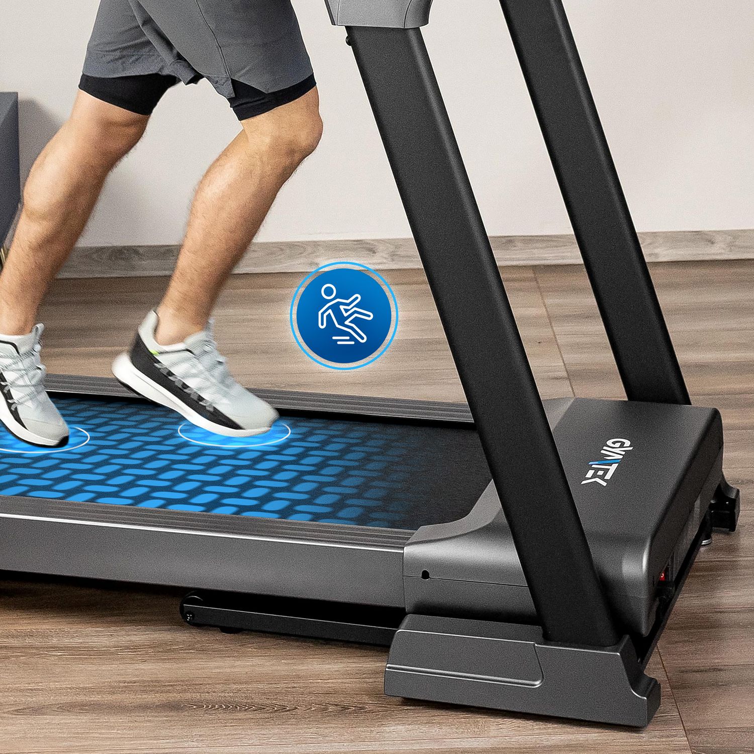- Antypoślizgowy, 5-warstwowy pas biegowy: Zapewnia wysoką przyczepność podczas biegu, niezależnie od tempa i obuwia użytkownika.