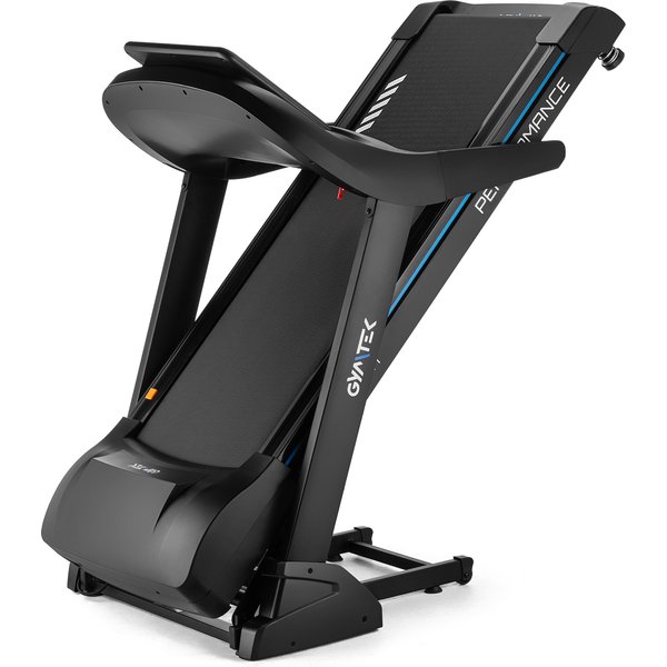Bieżnia Gymtek XT900 to świetny sprzęt do każdego wnętrza, bez względu na metraż. Składana konstrukcja wspierana przez siłownik hydrauliczny i system Soft Drop umożliwia przechowywanie bieżni w pozycji pionowej po skończonym treningu. Sprzęt wyposażony jest w klucz bezpieczeństwa, które pociągnięcie skutkuje zatrzymaniem się pasa bieżnego. Wbudowany port USB umożliwia ładowanie urządzeń mobilnych podczas biegu. Na konsoli znajdują się także przyciski służące do szybkiej zmiany prędkości lub kąta nachylenia o wartościach: 4, 8 i 12.