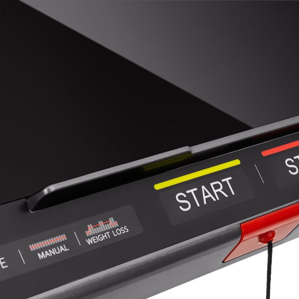 - Regulacja prędkości: Manualna regulacja prędkości w zakresie od 0,8 do 22 km/h daje pełną kontrolę nad intensywnością ćwiczeń, dopasowując je do indywidualnych celów treningowych. Przyciski szybkiego wyboru pozwalają błyskawicznie zmienić prędkość.