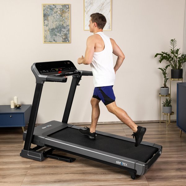 Silnik o mocy do 4,5 HP zapewnia płynną i wydajną pracę bieżni, pozwalając na rozwijanie prędkości do 22 km/h. Dzięki temu urządzenie doskonale sprawdzi się zarówno podczas intensywnych treningów biegowych, jak i dynamicznych sesji interwałowych.