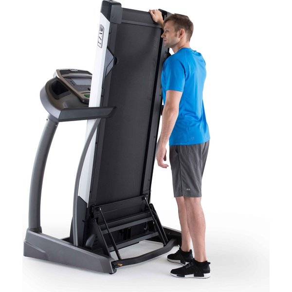 Bieżnia Elite T7.1 od marki Horizon Fitness posiada składaną konstrukcję, dzięki której po zakończonym treningu będziesz mógł odłożyć ją w dowolne miejsce, tak aby nie zabierała Ci przestrzeni. Jest to niezwykle proste, ponieważ model ten posiada również koła transportowe, które ułatwiają transportowanie.
