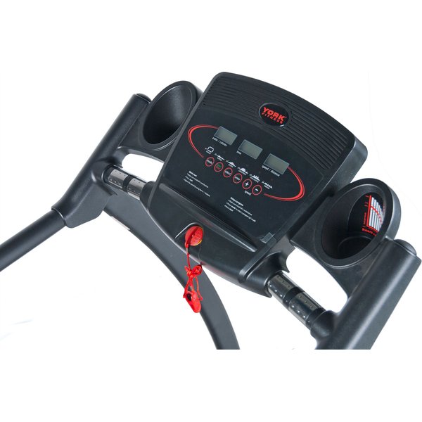 T103 to podstawowy model bieżni w ofercie York Fitness. Posiada automatyczną regulację prędkości i manualną regulację kąta pochylenia. Bieżnia jest nowa, nigdy nie użytkowana z pełną gwarancją do użytku domowego. Model posiada małe pęknięcie plastiku oraz defekt pasa bieżni (widoczne na zdjęciach), które nie przeszkadzają w użytkowaniu, działaniu bieżni