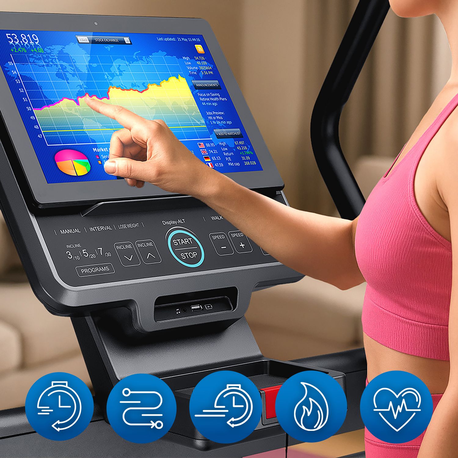 - Większe bezpieczeństwo podczas intensywnych ćwiczeń: Możliwość zmiany parametrów bez odrywania rąk od uchwytów zmniejsza ryzyko utraty równowagi, co jest szczególnie ważne przy dużych prędkościach i wysokim nachyleniu.