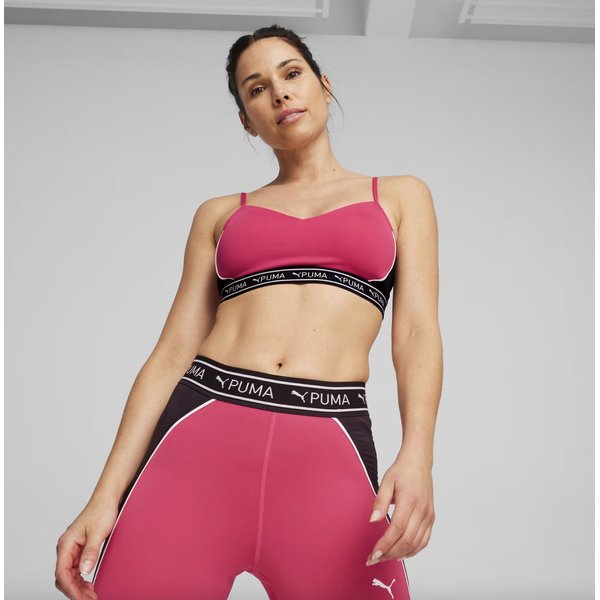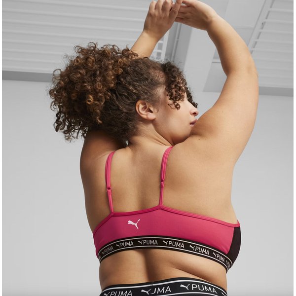 Biustonosz sportowy damski Move Strong Puma to idealny wybór dla aktywnych kobiet. Dzięki technologii dryCELL zapewnia skuteczne odprowadzanie wilgoci i chroni przed potem podczas treningu. Wykonany z ekologicznej technologii miDori bioWick oraz przynajmniej w 50% z materiałów pochodzących z recyklingu. Stanik Move zapewnia niskie wsparcie, regulowane paski i wyjmowane wkładki. Dopasowany krój zapewnia wygodę i swobodę ruchów. Logo marki dodaje sportowego charakteru.